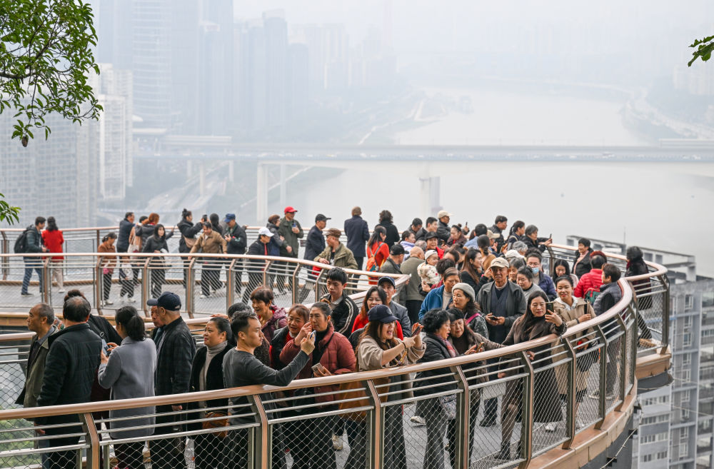 11月24日,人们在重庆半山崖线鹅岭栈桥观光、拍照。新华社记者 陈诚 摄